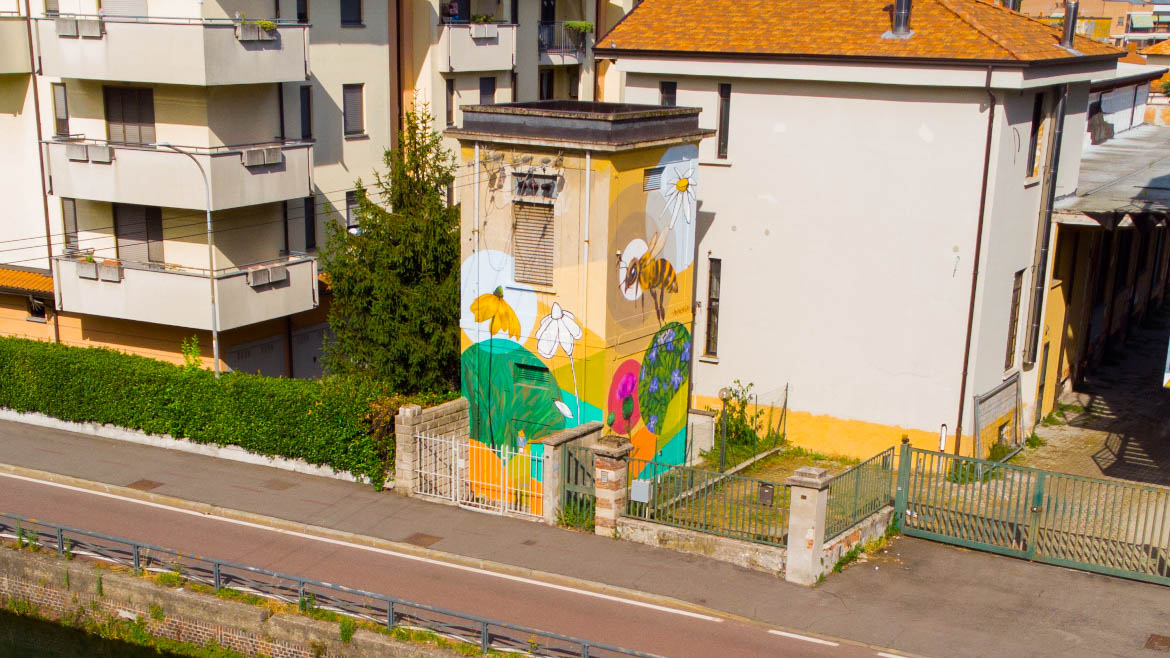 Refreshink, in “Flora”, rende omaggio alle piante e i fiori che popolano il Naviglio, legate alla presenza delle api, regine dell‘ecosistema.