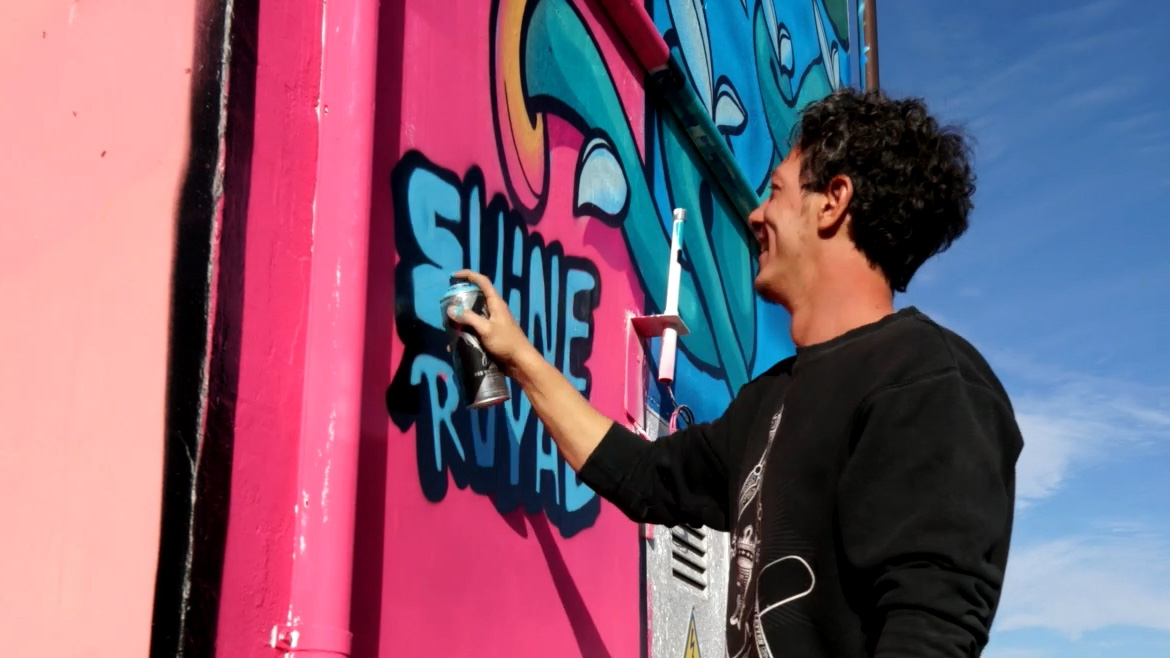 Artista dei collettivi Int55 e Tdk, ShineRoyal ha costruito uno stile tagliente che mescola street art, writing e lettering con tecniche pittoriche più tradizionali nella ricerca di un segno e di un’estetica che fa della strada la sua matrice e dell’irriverenza «post situazionista» la sua forza. Ex docente di grafica alla NABA di Milano, predilige lo spray come mezzo di espressione. Dal 2002 realizza i suoi dipinti sui muri di tutta Europa creando uno stile che lo ha reso immediatamente riconoscibile. Ispirato da Giuseppe Arcimboldo prima, da Armando Testa poi, crea i suoi personaggi modellando oggetti quotidiani che trasforma in animali. La passione per la calligrafia e la tipografia prende forma su muro con lettere che si capovolgono e diventano ambigrammi.