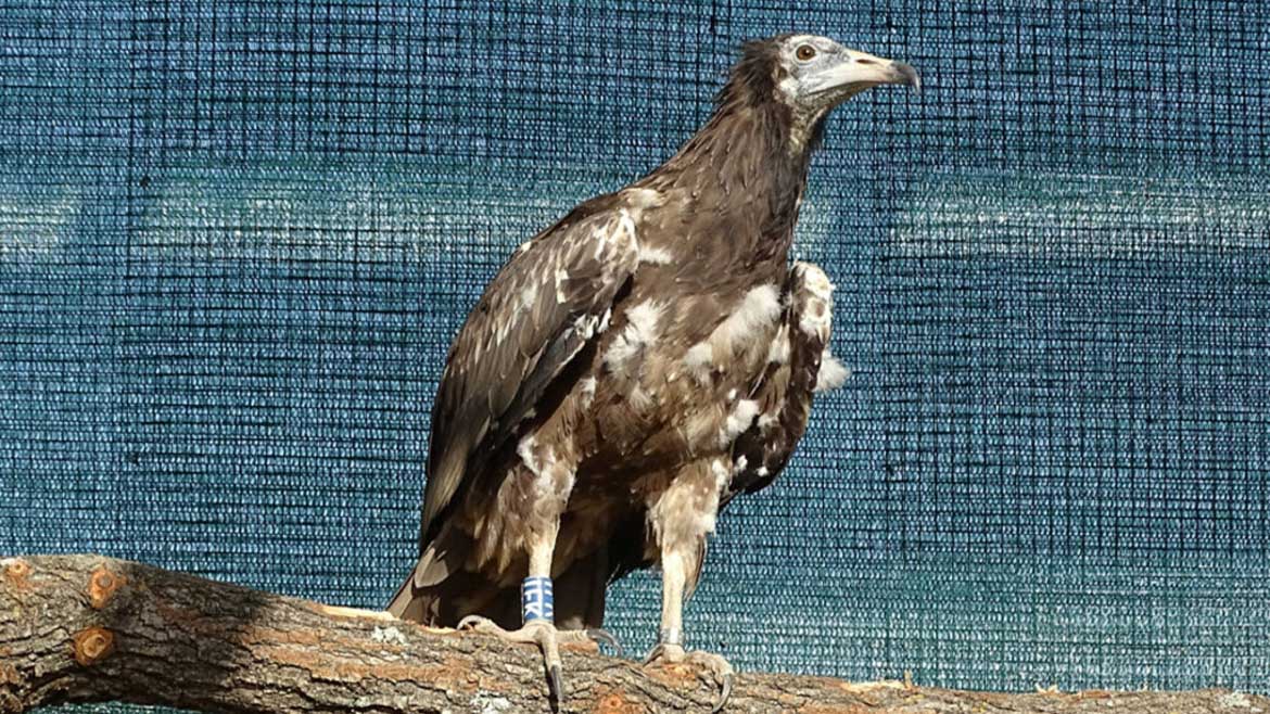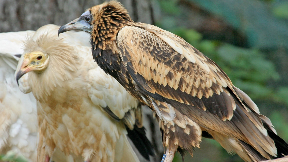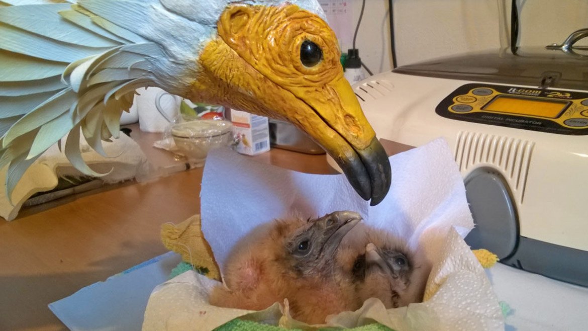 Esemplare di Capovaccaio che si prende cura dei suoi piccoli