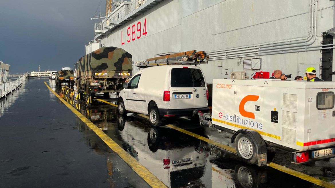 Nello specifico, sono state impiegate tre squadre di tecnici sul campo e altrettanti gruppi elettrogeni: uno nella working area notturna di Giampilieri (ME) ad alimentare una torre faro, e due nell’area di accoglienza di Bova Marina, di cui uno trasportato sulla nave da trasporto anfibio San Giusto e scortata fino al campo dalle forze dell’ordine e da alcuni mezzi della Brigata Marina San Marco.