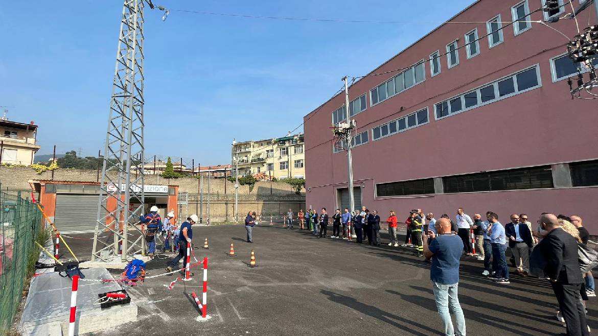In cosa consiste? Si tratta di un insieme di tralicci, pali, buche per i giunti, cabine secondarie dotate di apparecchiature tecnologiche e trasformatori - e quindi tutto il necessario per le sessioni di training degli operativi - approntato all’interno della sede di Unità Territoriale di Savona.