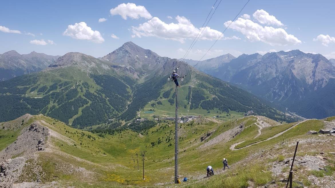 Siamo nel comune più alto d’Italia, famoso per essere una delle mete sciistiche più ambite, il Sestriere. I suoi impianti sono composti da una cabina primaria con 2 trasformatori da 10 MVA, 8 linee in MT in uscita, una delle quali collegata con una cogenerazione di 9 MW che fornisce anche il teleriscaldamento a tutta la località, una rete che serve un comprensorio sciistico internazionale di oltre 400 km di piste che di recente ha ospitato la coppa del mondo di sci alpino, e più circa 30 cabine secondarie MT/BT in alta quota. Sul monte Fraiteve, a circa 2.700 metri, oltre agli impianti sciistici, ci sono anche importanti ripetitori di TV, radio e organismi di vigilanza e soccorso, dove, per garantire il servizio, si incontrano 3 linee MT provenienti da 3 cabine primarie differenti.