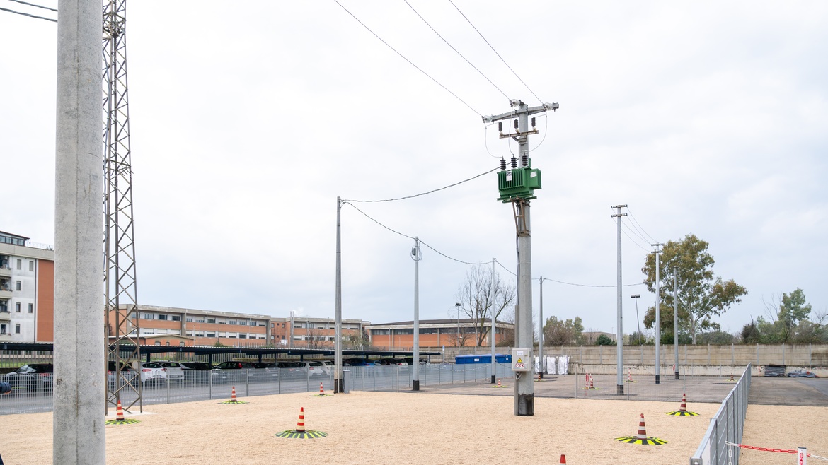 L'area esterna ospita installazioni tecniche specifiche per l'addestramento sul campo: una linea MT in conduttori nudi su sostegni, una MT in cavo elicord e due linee BT. Gli operatori possono così esercitarsi in un ambiente che replica fedelmente le condizioni operative dell’infrastruttura elettrica di distribuzione, in un contesto sicuro e protetto garantito da una puntuale supervisione di docenti e istruttori qualificati.