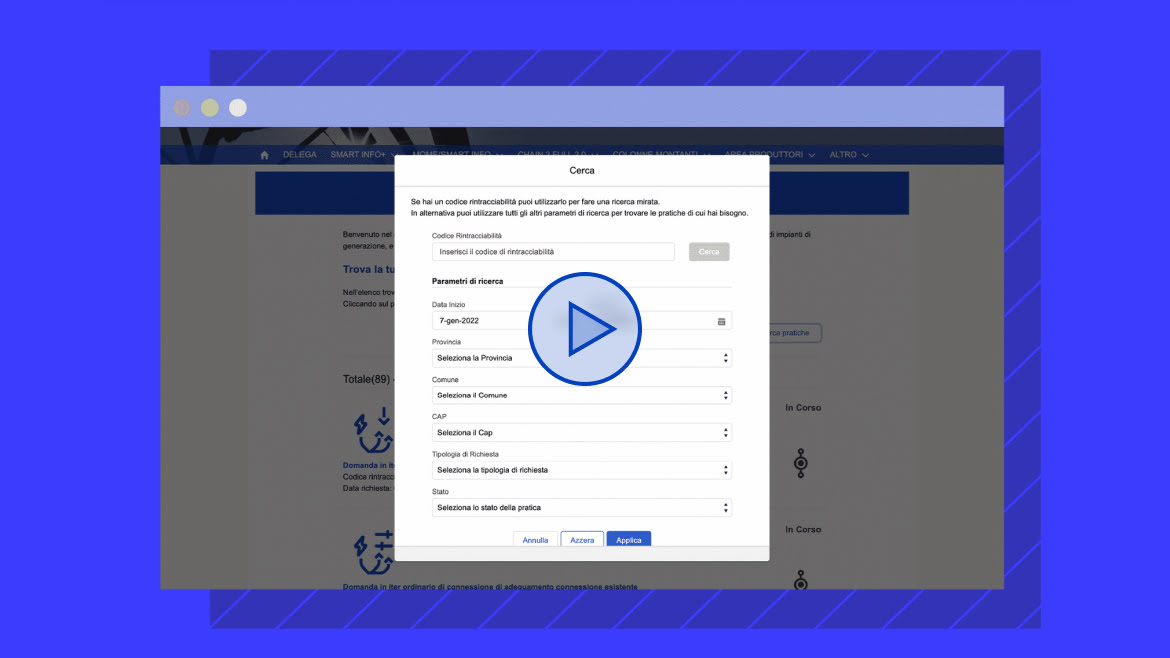 Guarda il tutorial per approfondire tutti gli step, dall’accesso al servizio all’interno della piattaforma, fino alla ricerca pratica e al controllo dello stato di avanzamento.